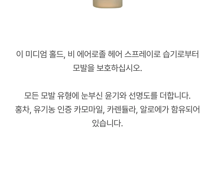 이 미디엄 홀드, 비 에어로졸 헤어 스프레이로 습기로부터 모발을 보호하는 스프레이입니다.