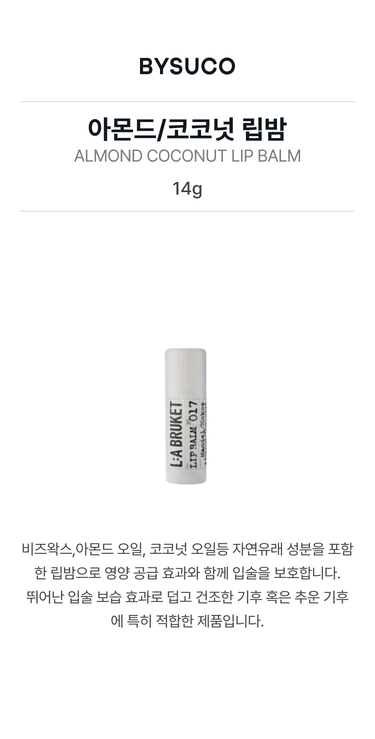 | 표시성분 | 스위트아몬드오일(32.84%), 호호바씨오일, 세라알바, 코코넛야자오일(16.9%), 토코페롤, 해바라기씨오일 |