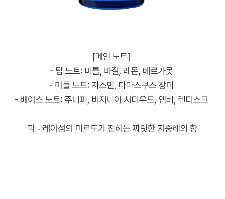 - 탑 노트: 머틀, 바질, 레몬, 베르가못