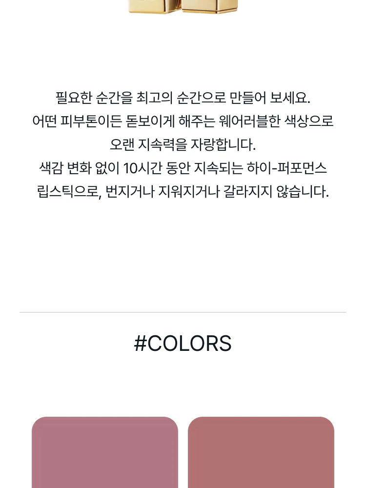벨벳처럼 부드러운 매트 마감 처리된 롱웨어 컬러 립스틱