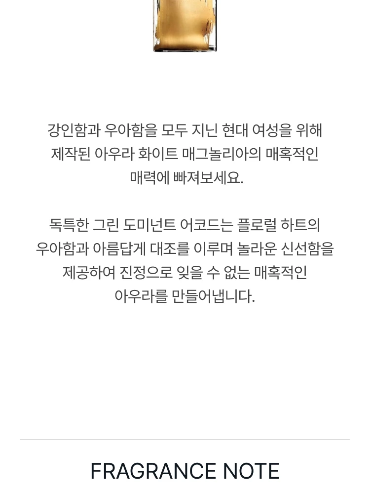 - 밝고, 관대하며, 외향적인 분위기를 자아내는 향수