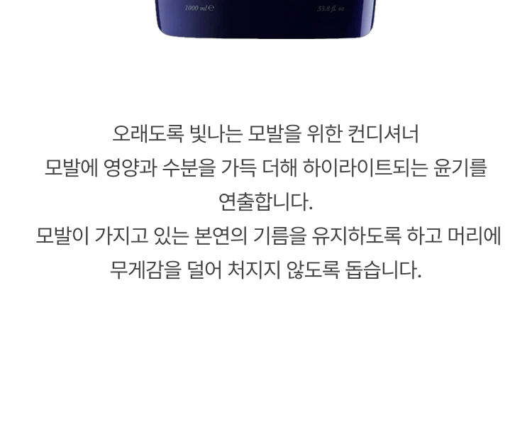 오래 지속되는 윤기를 부여해주는 컨디셔너로, 모발에 강력한 윤광을 선사해줍니다.